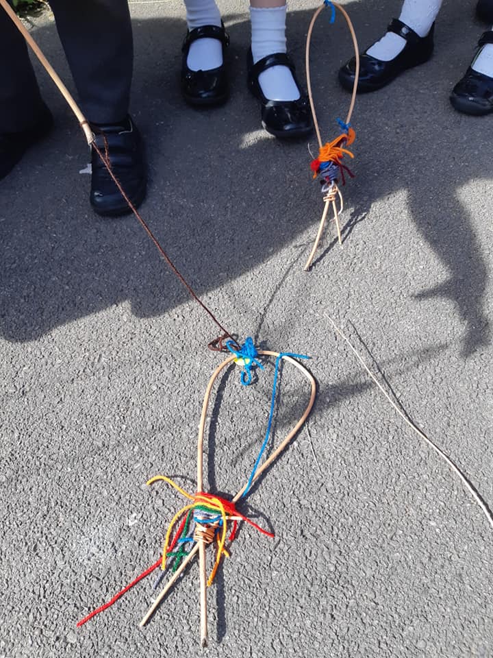 It was tricky bending and weaving the willow to hold our fish body in shape but weaving the wool to create colourful fish of all shapes and sizes was great fun. Super teamwork to help each other and lots of perseverance shown to create our willow fish.